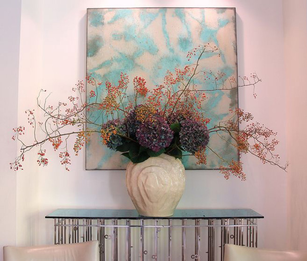 一件賞心悅目的花藝作品,可以通過(guò)花的自然形態(tài)渲染出空間的美感,或者借花的盛放枯榮來(lái)捕捉自然的真實(shí)瞬間,它傳遞的是居住者的生活志趣與感悟,獲取精神上的美感共鳴。