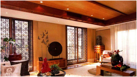 公共空間的家其具陳設(shè)在選材上經(jīng)常選用東南亞盛產(chǎn)的竹、木、藤等自然綠色環(huán)保的材料為主,通常家具以兩種以上的材料進行混合搭配制作而成,例如藤條與木材,竹子與藤條,利用材料的寬、窄、深、淺和材料本身的機理差別進行設(shè)計,各種不同編織手法使每件家具都呈現(xiàn)出獨特的色彩和紋理。東南亞的家具摒棄了復雜的裝飾和線條,取而代之的是簡潔柔和的設(shè)計手法,一般來說東南亞家具的結(jié)構(gòu)高度比較低矮,這有利于人們隨意地坐臥,在不經(jīng)意之中自然舒展人們的肢體,放松緊張的心情。東南亞家具以深色系為主,色彩方面融合了中式風格的設(shè)計,采用深棕色,黑色等深色調(diào),今人感覺沉穩(wěn)大氣。由于追求舒適和休閑的生活方式,東南亞的室內(nèi)裝飾拋棄了一些中式文化世俗的程式化的觀念,使室內(nèi)環(huán)境裝飾呈現(xiàn)清新自然的特色。